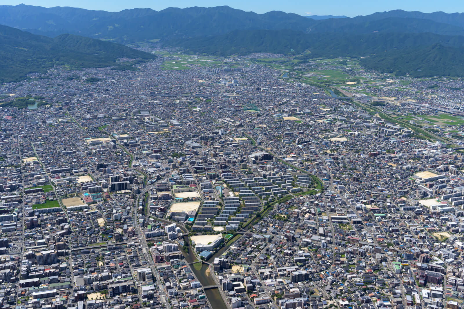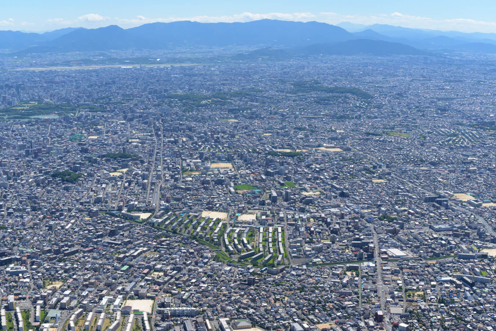 福岡市早良区上空でセスナから街並みの航空写真撮影を行いました。
