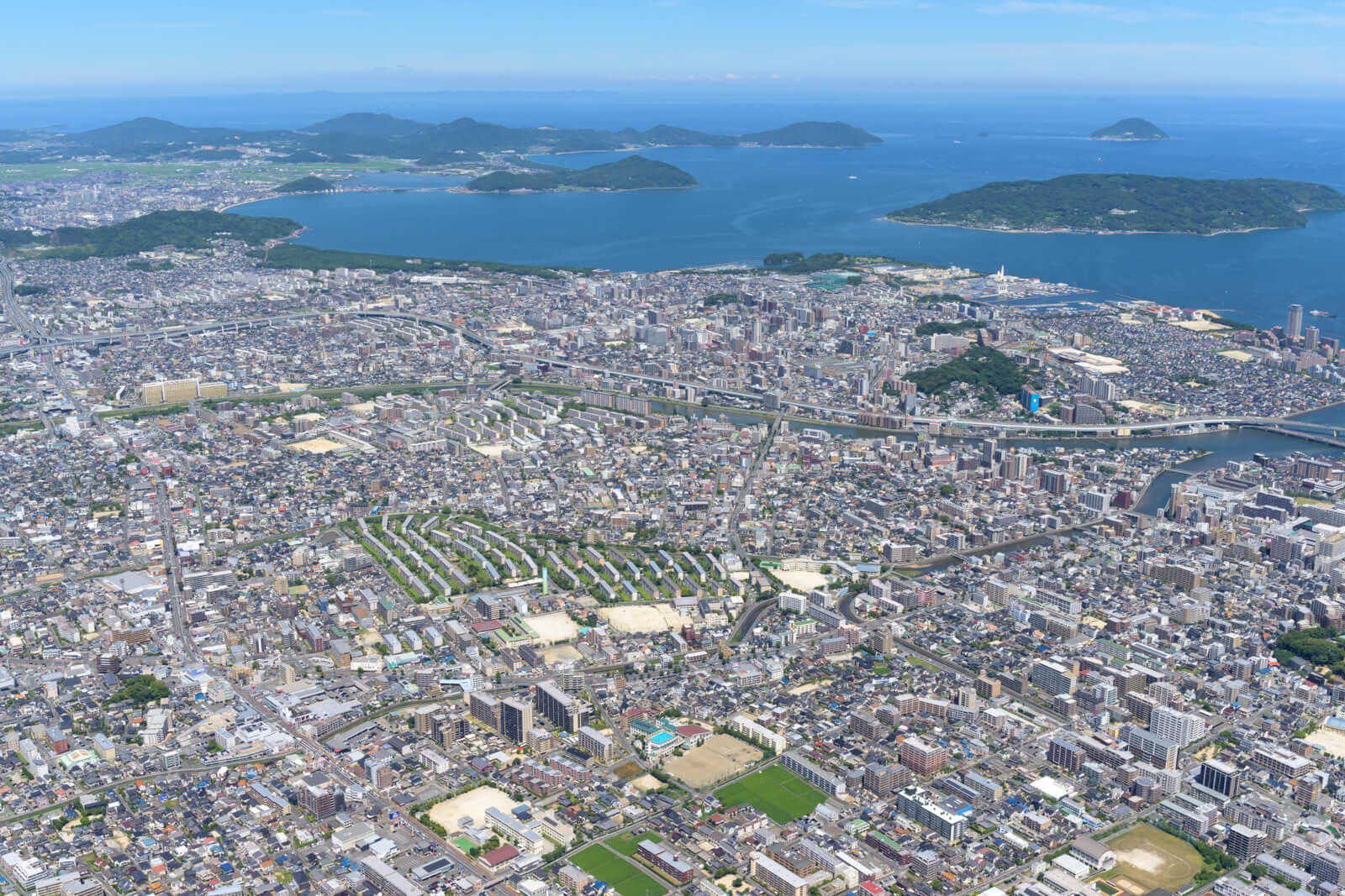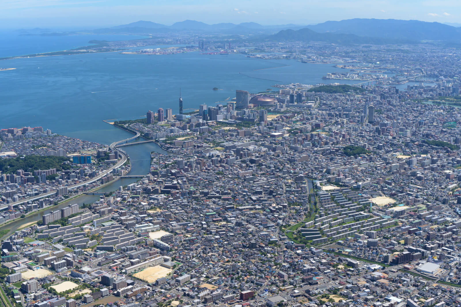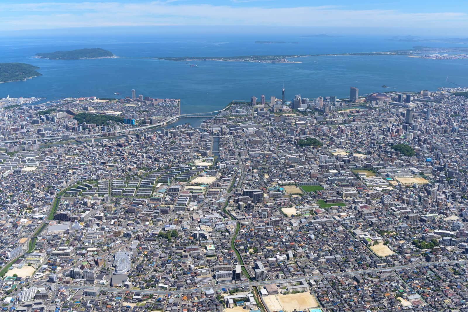 今回の撮影では早良区とその周辺の住宅地全域を中心に博多湾や能古島、志賀島などの景観と